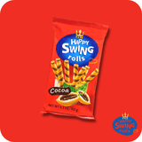 Savourez les Happy Swing Rolls Cacao, des gaufrettes croustillantes en forme de tubes garnies d’un fourrage chocolatĂ© intense. Leur texture lĂ©gĂšre associĂ©e Ă  un goĂ»t riche en cacao en fait un snack idĂ©al pour les amateurs de chocolat.